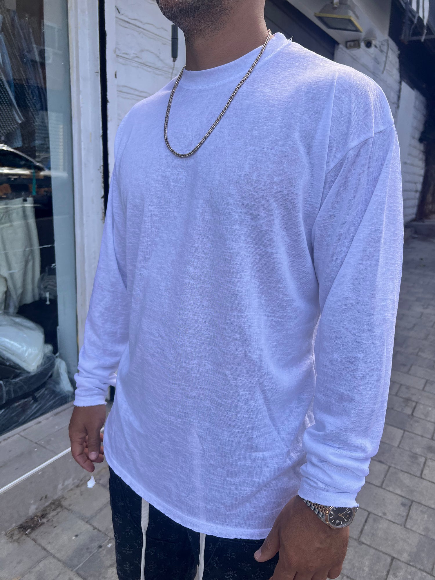 טישרט צווארון עבה לבן