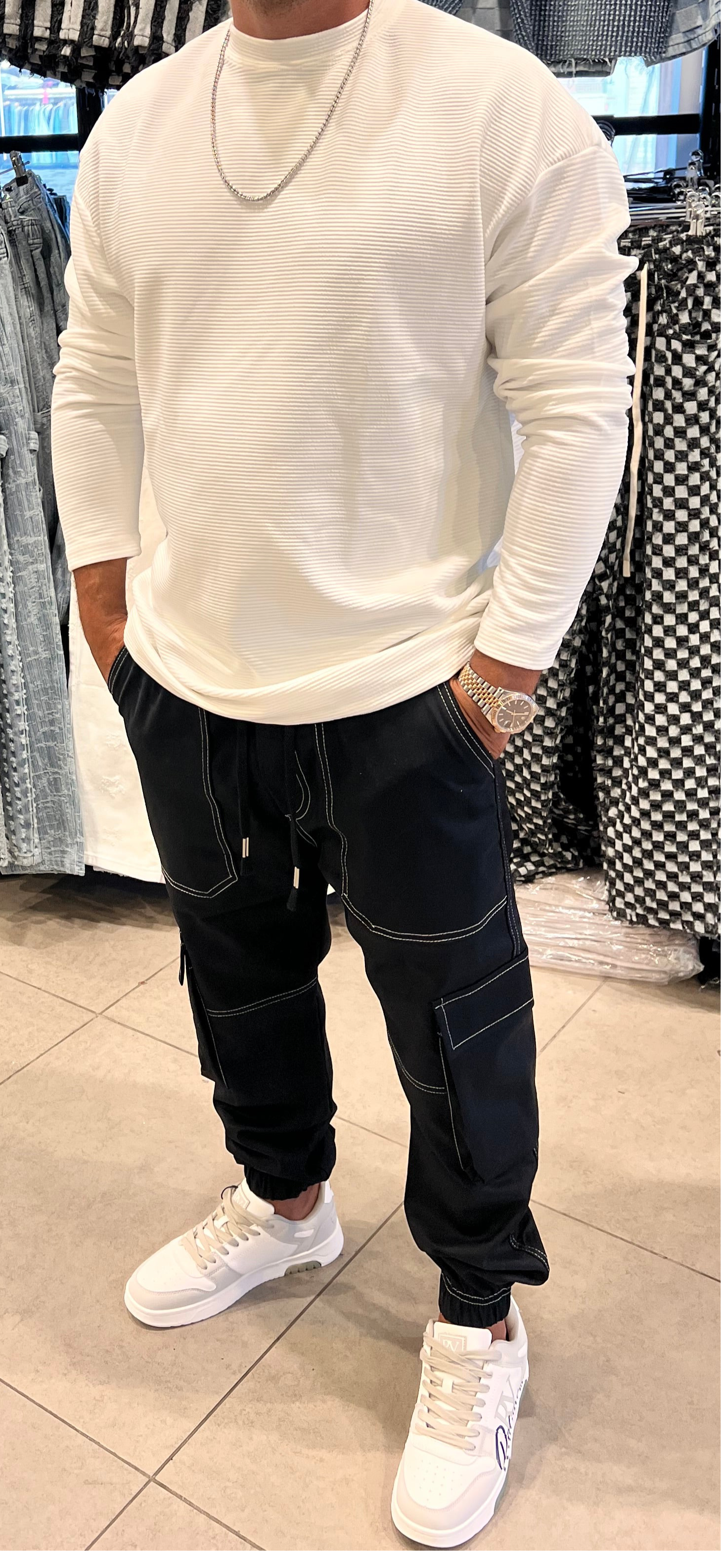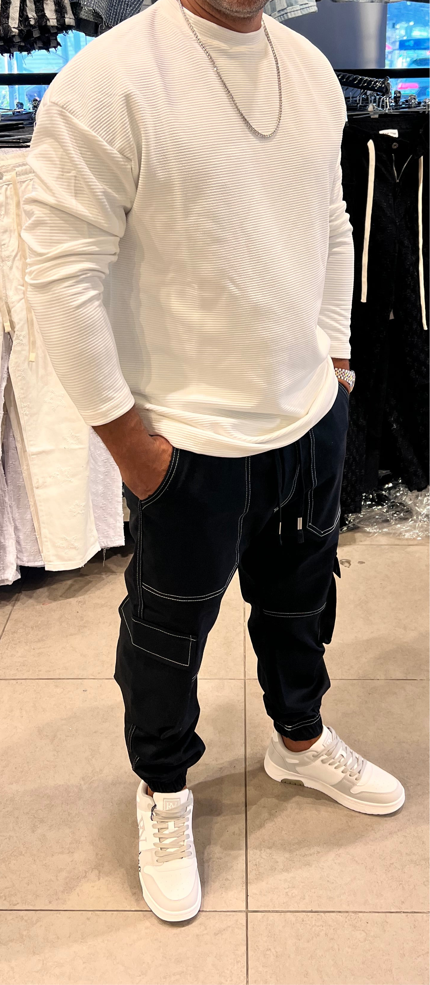 דגמ ח שחור תפר לבן גומי מלמטה חמש כיסים