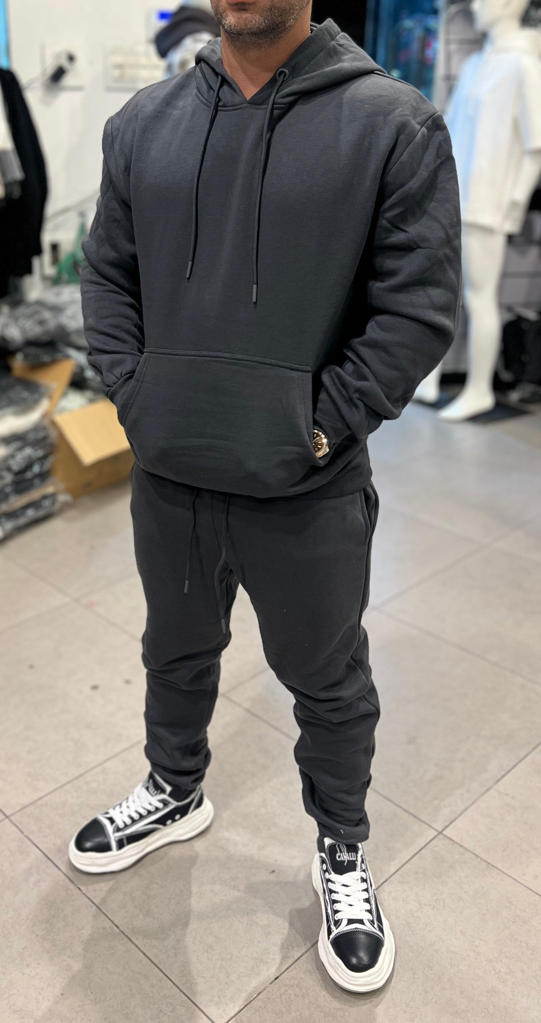 חליפת קפוצ׳ון פותר אפור כהה אופנה מושלמת 65% כותנה 36% פוליאסטר