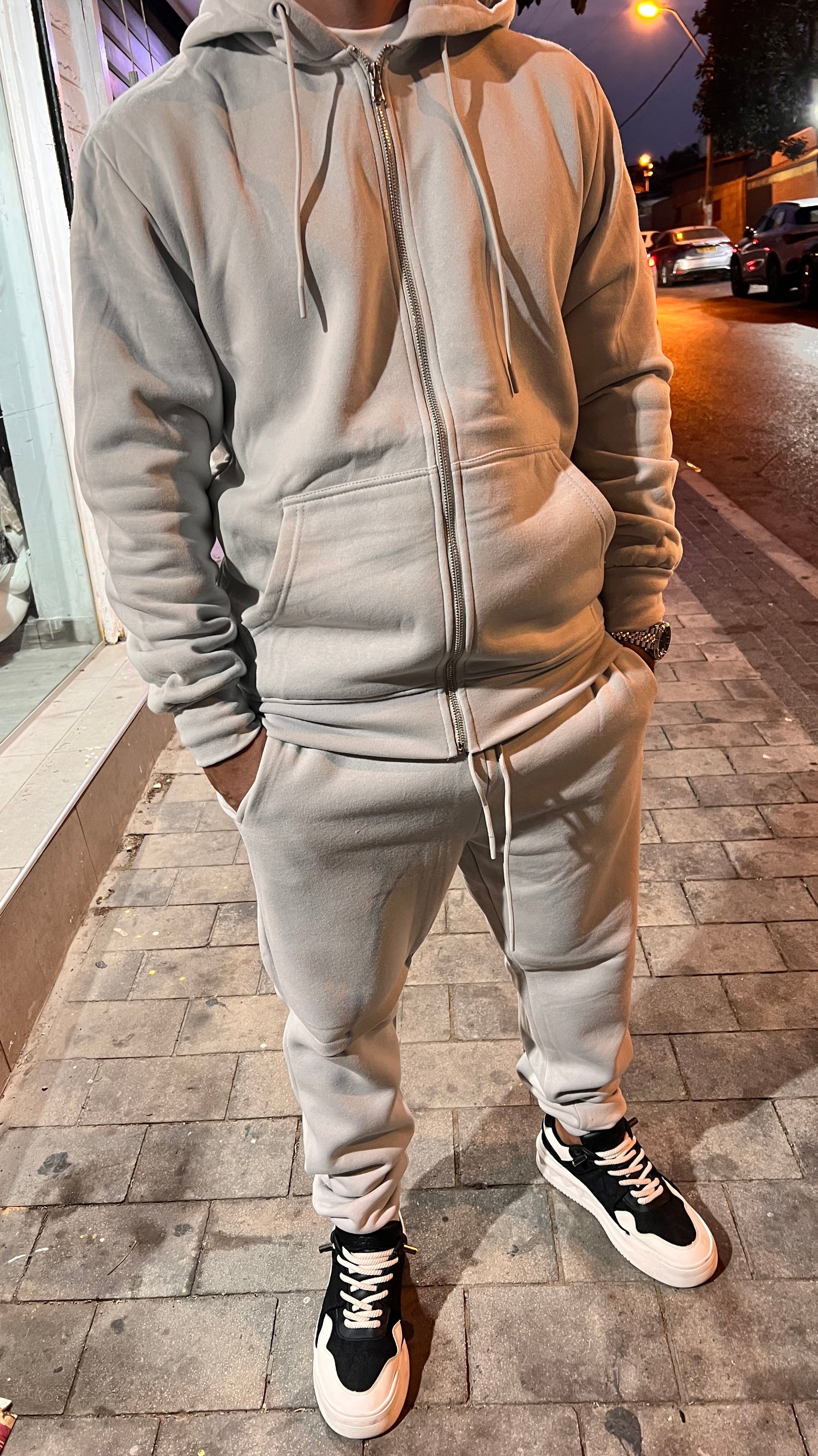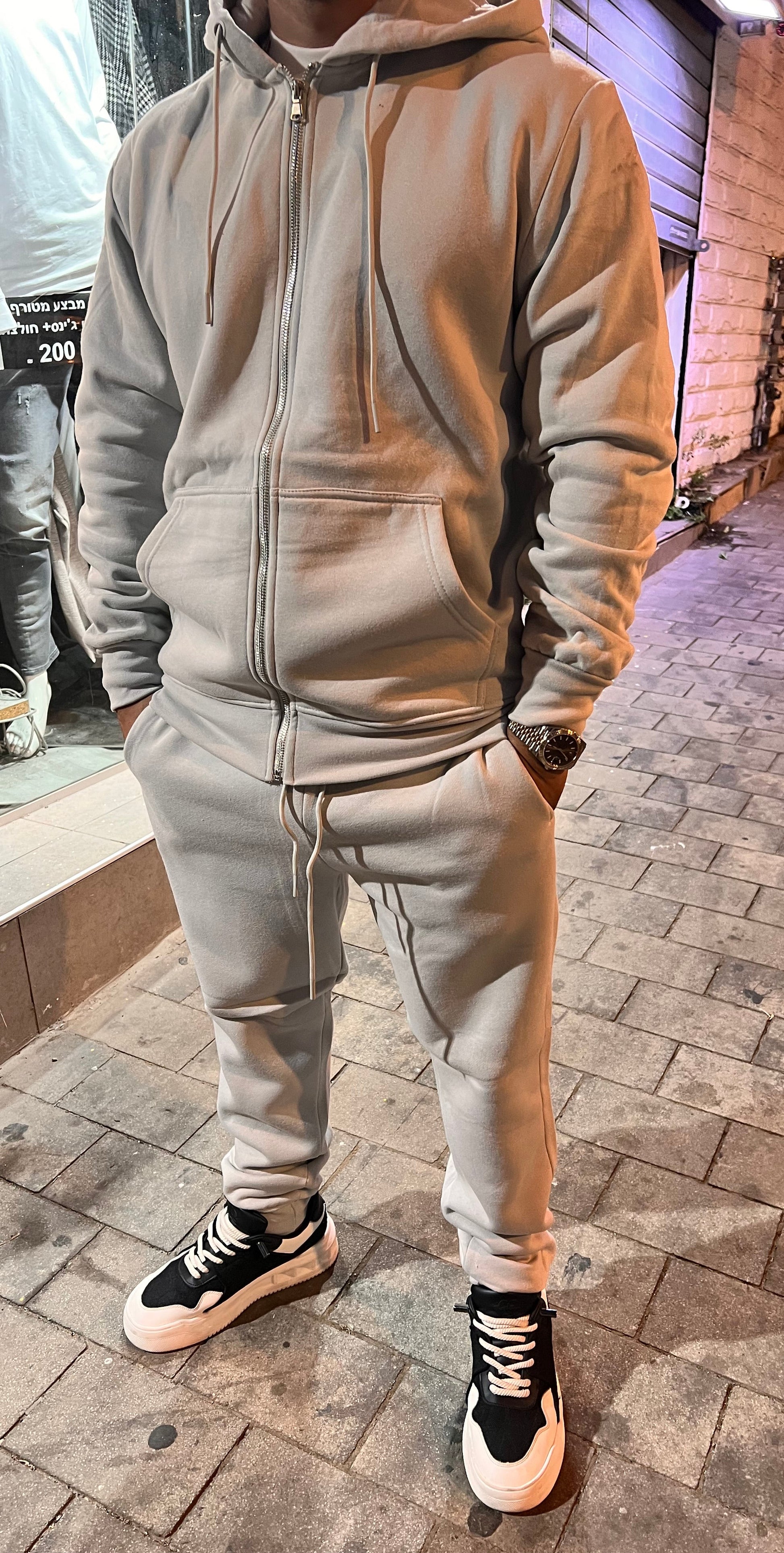 חליפת קפוצ׳ון רוכסן אפור בהיר מושלמת חובה