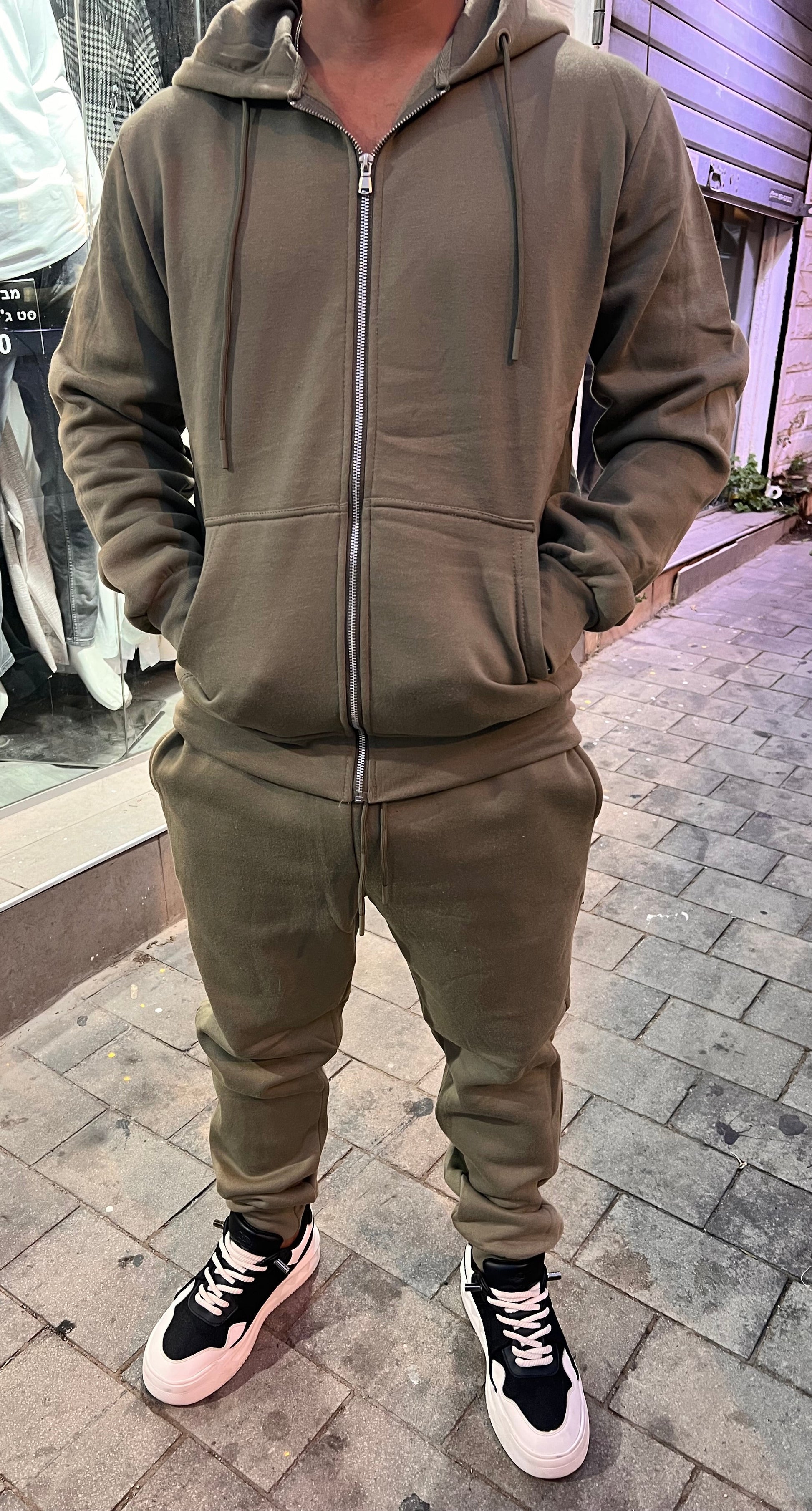 חליפת קפוצ׳ון רוכסן ירוק זית מושלמת חובה