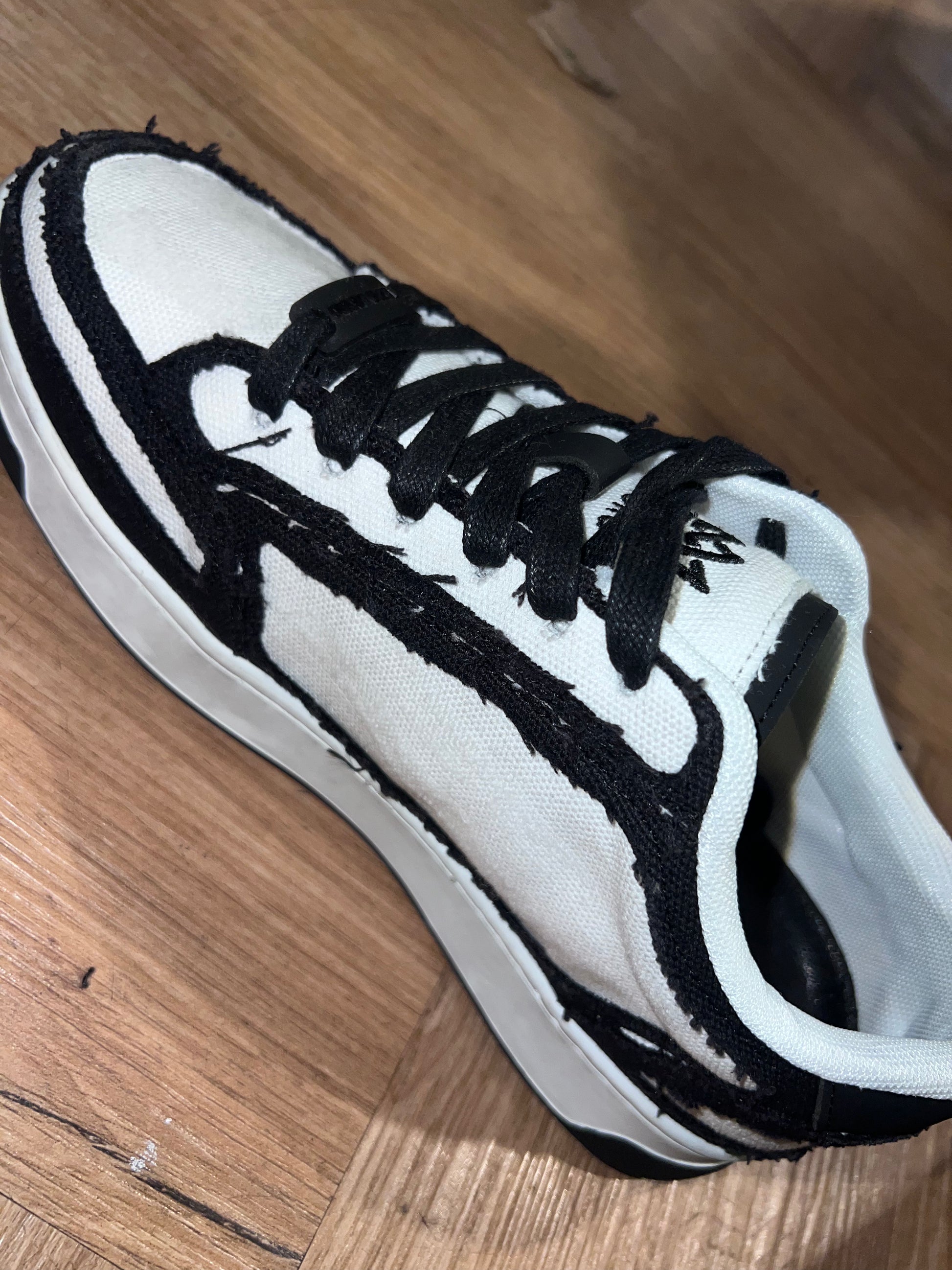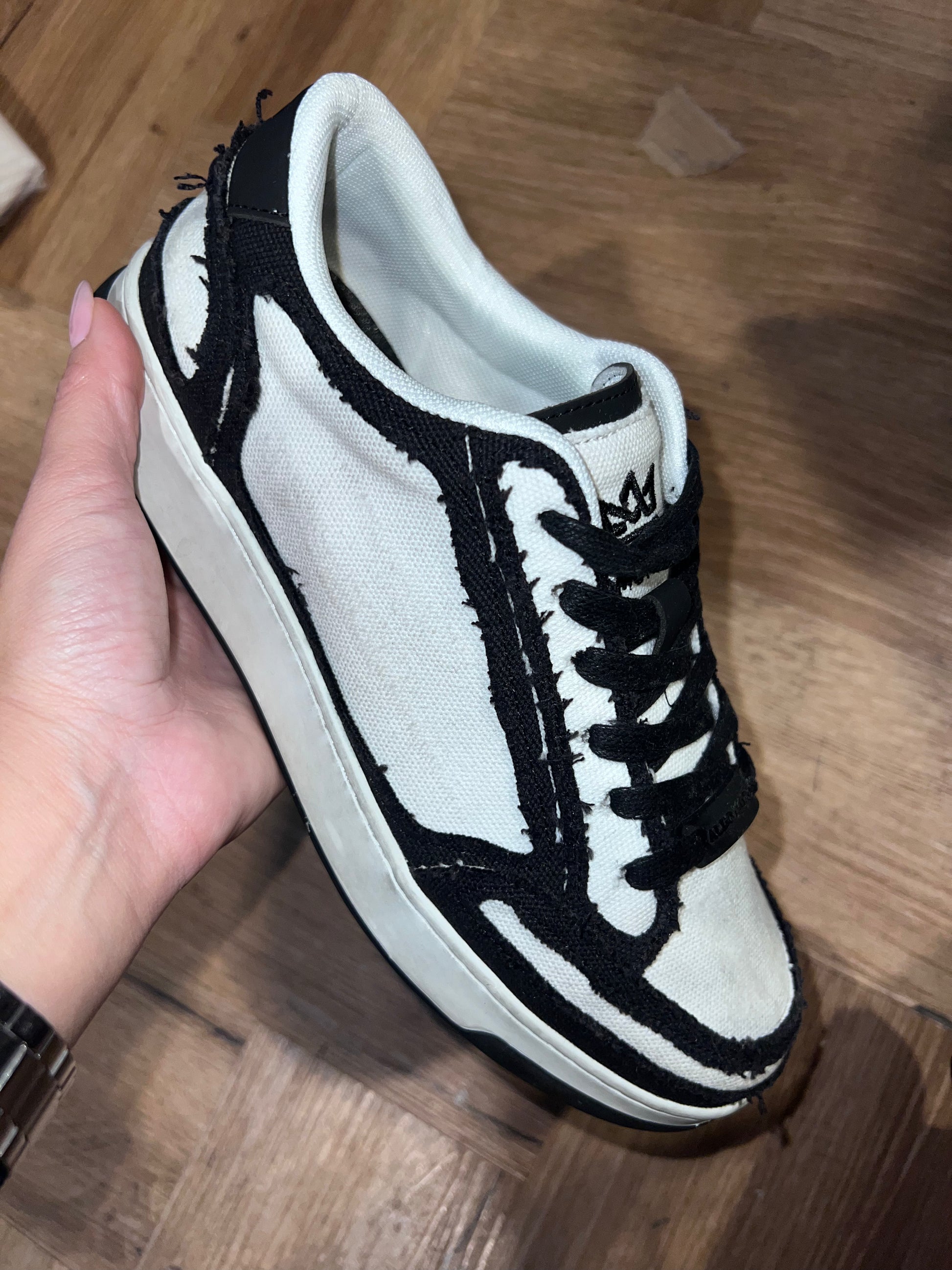 לנעל שרוכים עבים ושילובי בדים.